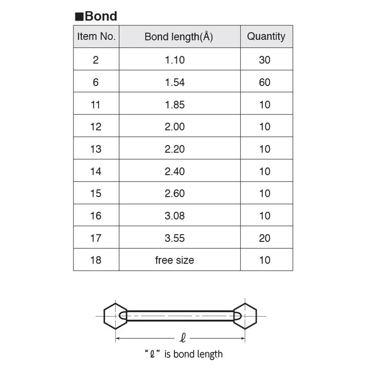 | Item No. | Name | Shape | Color | Bond Radius | Bond Angle | Quantity | |||||